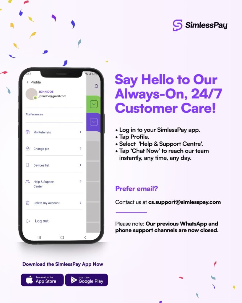 Prefer contacting us by email? Reach us at support@simlesspay.com