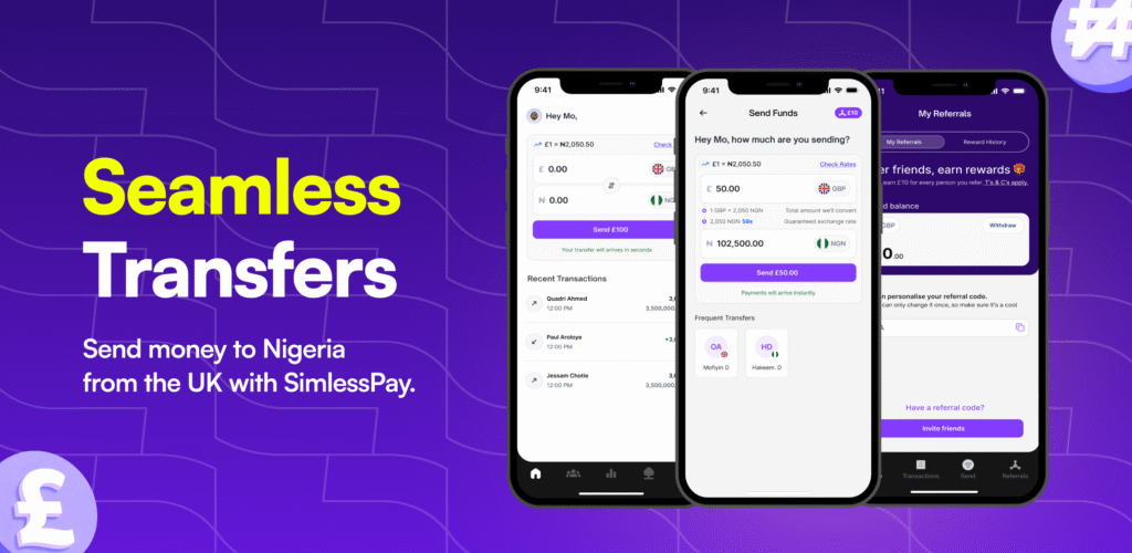 A few years back, our team saw the real struggles people face when sending money across borders, especially from the UK to Nigeria and beyond. Unfavorable rates, unreliable services, and unnecessary delays were the norm. We launched SimlessPay in 2023 with a clear vision: to make international money transfers cheap, fair, and simple for everyone – starting with zero-fee transfers and the best rates on the market.